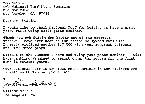 Send comments about this site to Bob Selvin [email protected] Copyright © 1998 by National Turf. All rights reserved.